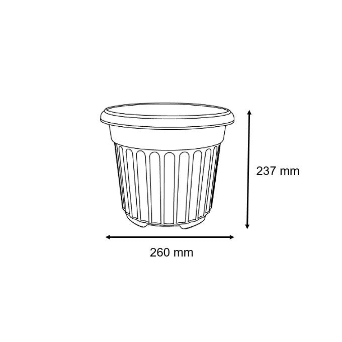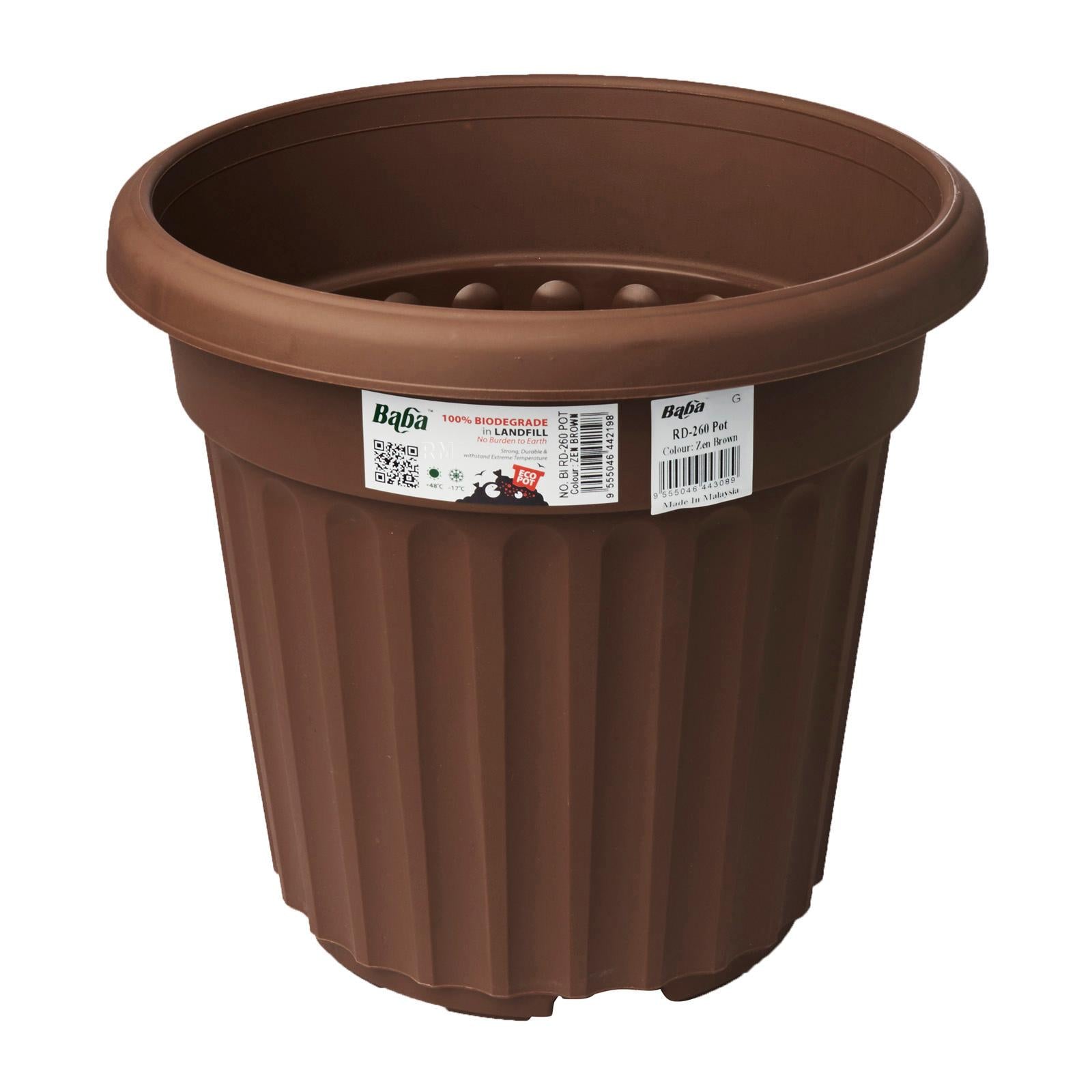 Medium size 260mm round planting pot, made of PP virgin material and food grade coloring. Product can withstand temperature range from +48 degree to -17 degree, and with UV protection. Good water ventilation to protect your plant from over-watering. Recommend to pair with a brown plant saucer. Suitable for outdoor gardening.