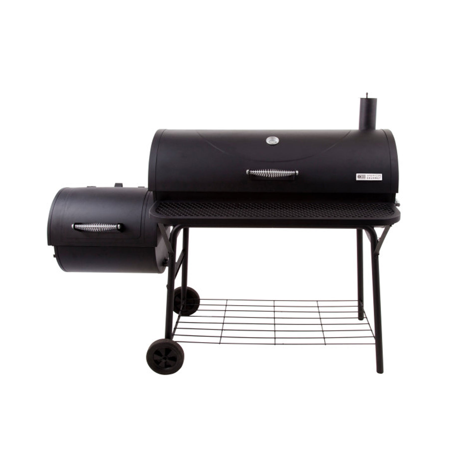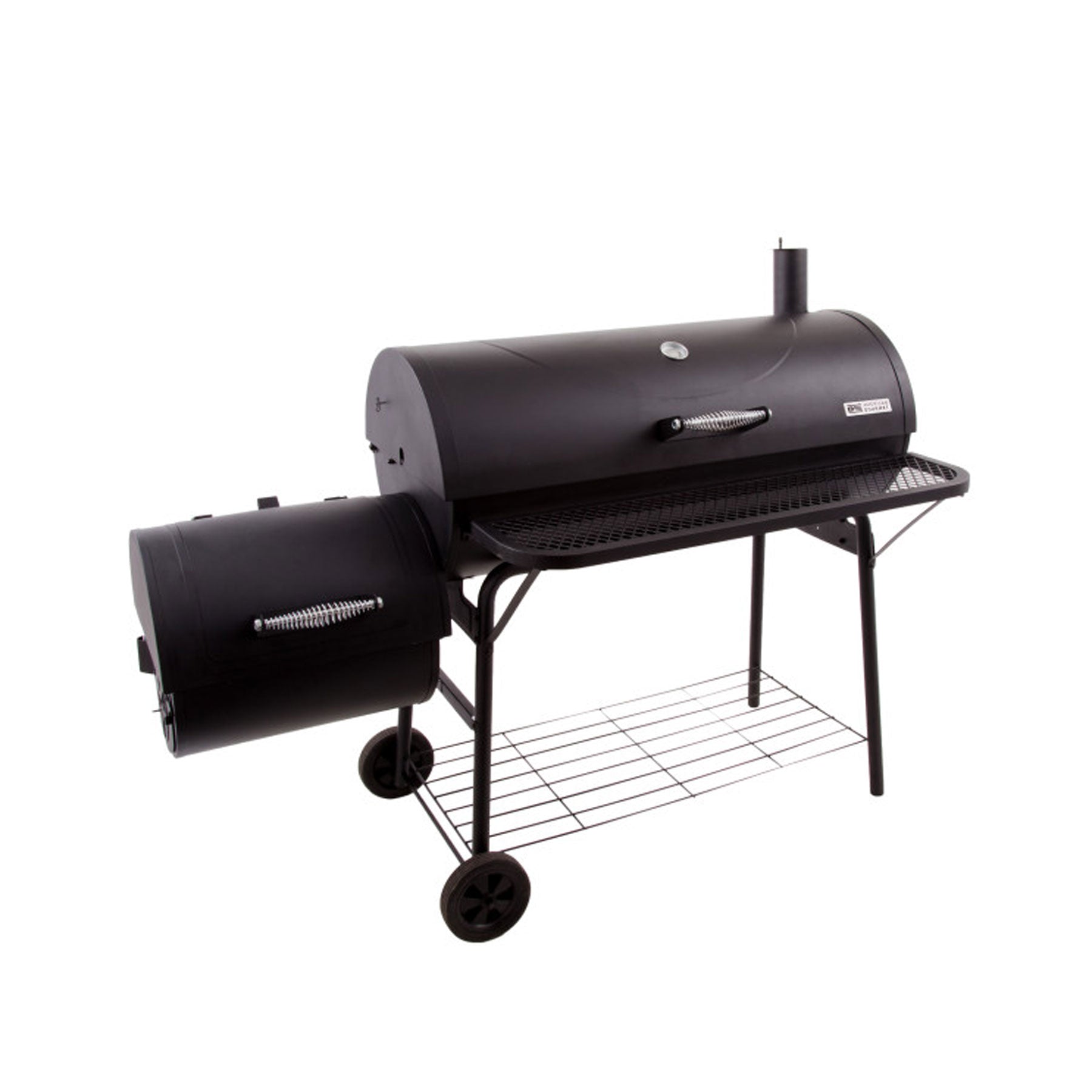 Get a traditional smoking and grilling experience with the large-capacity American Gourmet® 1280 Offset Smoker by Char-Broil®. The barrel-style smoking chamber has a vertical smokestack and multiple dampers for heat and smoke control and a height-adjustable charcoal tray to regulate temperatures when charcoal grilling. There's a front shelf for work space and a firebox door for easy ash removal.