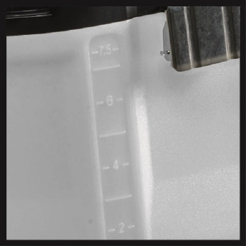 The Einhell GE-WS 18/75 Li-Solo cordless pressure sprayer is a member of the Power X-Change family: each rechargeable battery in the series can be combined with any PXC device. The pressure sprayer is a practical aid for lush green in the garden, also ensuring the uniform distribution of plant protection, fertilizer and weed control agents. The pressure sprayer is fitted with an automatic pump that operates at 2.5 bar and delivers up to 1 liter per minute - there is no need to build the pressure up manually. A scale in the transparent tank gives an indication of the fill level of the 7.5-liter tank at a glance. The large metal handles on the tank are designed to make opening and closing easier. The brass nozzle for distribution is individually adjustable. The telescopic spray lance is made of stainless steel and fitted with a lockable control button. The padded carrying strap takes the strain off carrying and using the sprayer in operation. The battery cover offers protection from splash water. The rechargeable battery and charger are available separately, for example as a practical starter set.